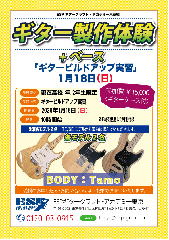 当日はギタークラフトの工程である「組み込み」を体験しながら完成を目指します。