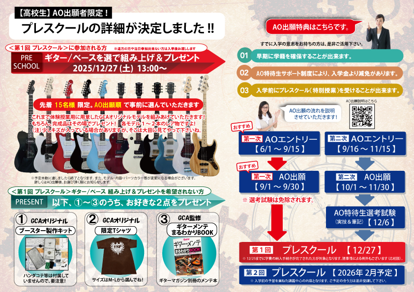 ③入学までの間に、ギター組み上げ&プレゼント等のプレスクール(特別授業)を受けることが出来ます。(希望者のみ)