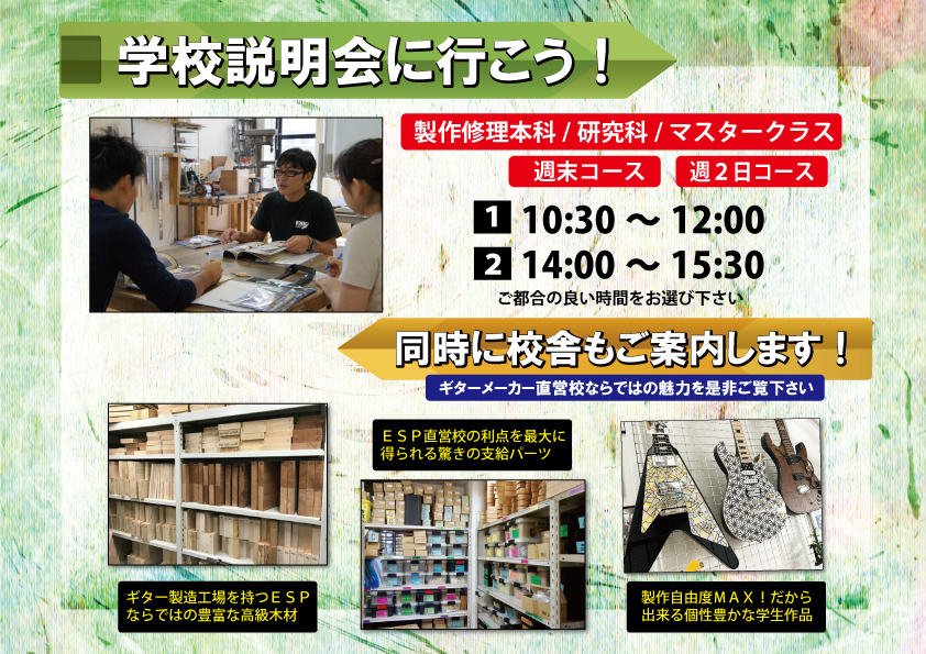 本年最後の学校説明会を開催します! 2025/12/17 年末に向けお問い合わせが増えたことを受けて、本年最後の学校説明会を開催します! 午後の時間帯にお越しいただければ来年度入学者様のプレスクール(ギタービルドアップの特別授業)を見学していただくことが出来ます! ◆午前会10:30~ ◆午後会14:00~ お申込みはこちら < 前の記事 | 記事一覧 | 次の記事 >