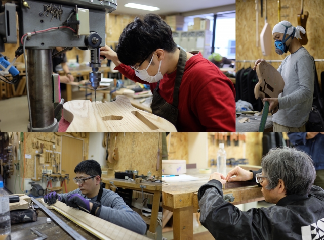 ESPギタークラフト・アカデミー東京校が4月入学の年度制で開講しているコースです。毎週土曜日の週1日(夏休み・冬休みあり)、年間40日の授業日で1本のギターを製作します。