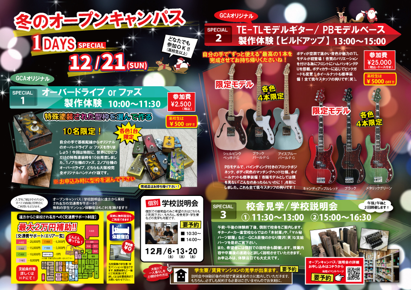 【冬のオープンキャンパス2025】本年最後のギター&ベース&エフェクターの「トリプル製作体験!」最高の1日にしましょう!
