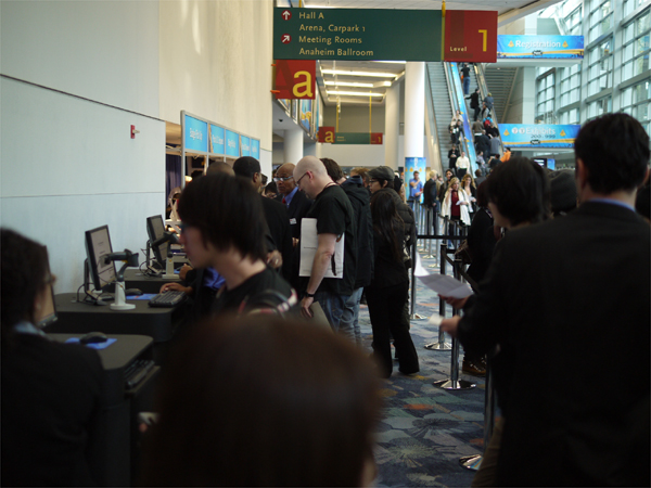 ナムショー会場に入るためのレジストレーションを行います。ナムショーは基本的に世界中の楽器関連業者に対するショーなので一般の方は入場できないのですが、ESPの学生ということで特別に入場が許可されています。 |