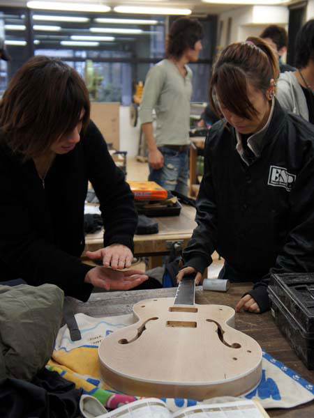 こんな機会、激レアです!!ギターの内藤 デュラン 晴久さんは、出来たてホヤホヤの学生作品の試奏をして下さいましたよ!!