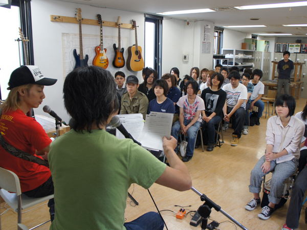 Galneryusでギタリストとして活躍中、MI JAPAN GIT科のスペシャルアドバイザーのSyuさんとMIジャパン副校長・ESPマーケティング開発室アーティストリレーション所属の進士さんを招いて『Syuセミナー』を開催しました!! (^_^)v