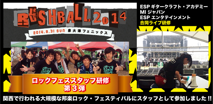 舞州で行われたSUMMER SONIC 2014 にESPギタークラフト・アカデミーの学生を含む、総勢約100名の学生達が様々なステージでスタッフとして活躍しました!! |