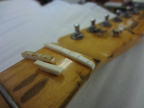 6ナットの交換を行いました。このパーツは弦をサポートする重要なパーツです。破損していましたので新しいものに交換しました。